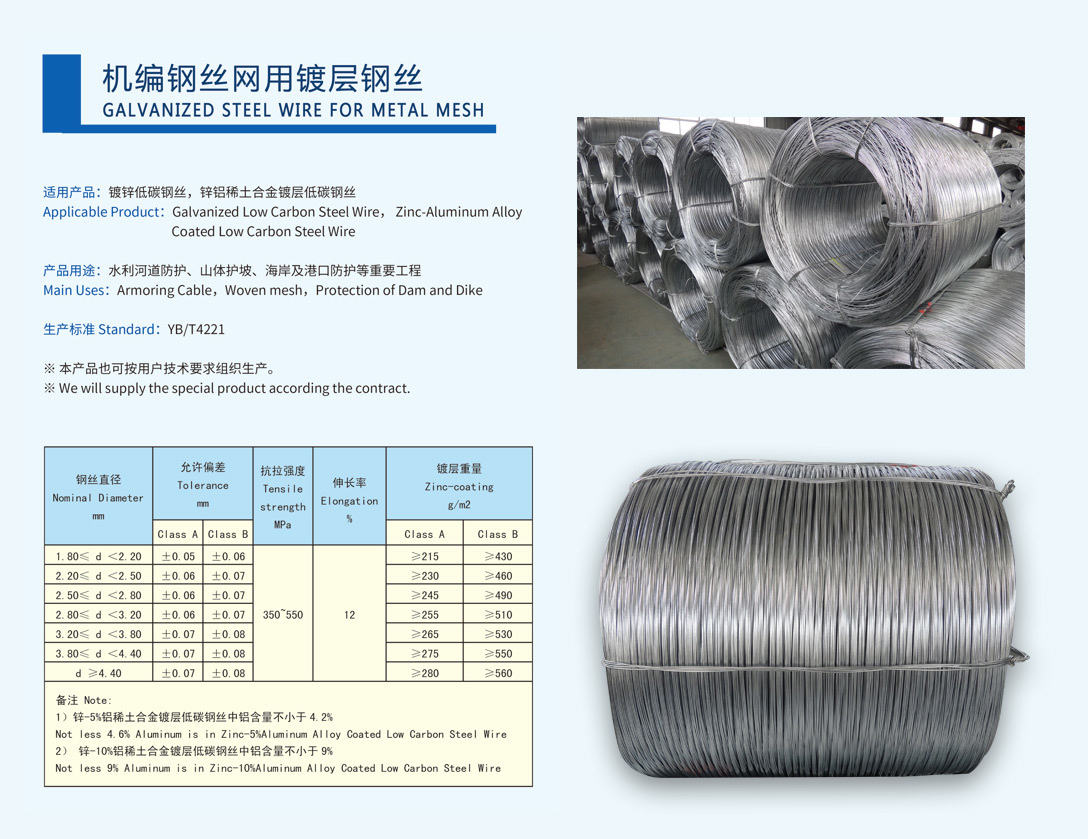浙江森旺金屬制品有限公司成立于2012年,坐落湖州市吳興區(qū)東林鎮(zhèn)工業(yè)功能區(qū)。公司專業(yè)從事各類鍍鋅鋼絲、鋼絞線等產(chǎn)品的開發(fā)及生產(chǎn)。目前產(chǎn)品已廣泛應用于各類通信光電纜,電力輸送,電氣化鐵路工程,各類堤壩防護及農(nóng)業(yè)溫室等工程領域。公司秉承“追求卓越品質(zhì),創(chuàng)建卓著信譽”的經(jīng)營理念,始終堅持專業(yè)化、規(guī)模化的經(jīng)營模式。